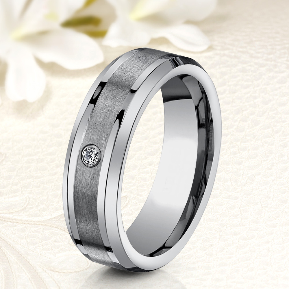Modern stílusú matt és fényes Női köves tungsten karikagyűrű WB-KT-V02360CZ